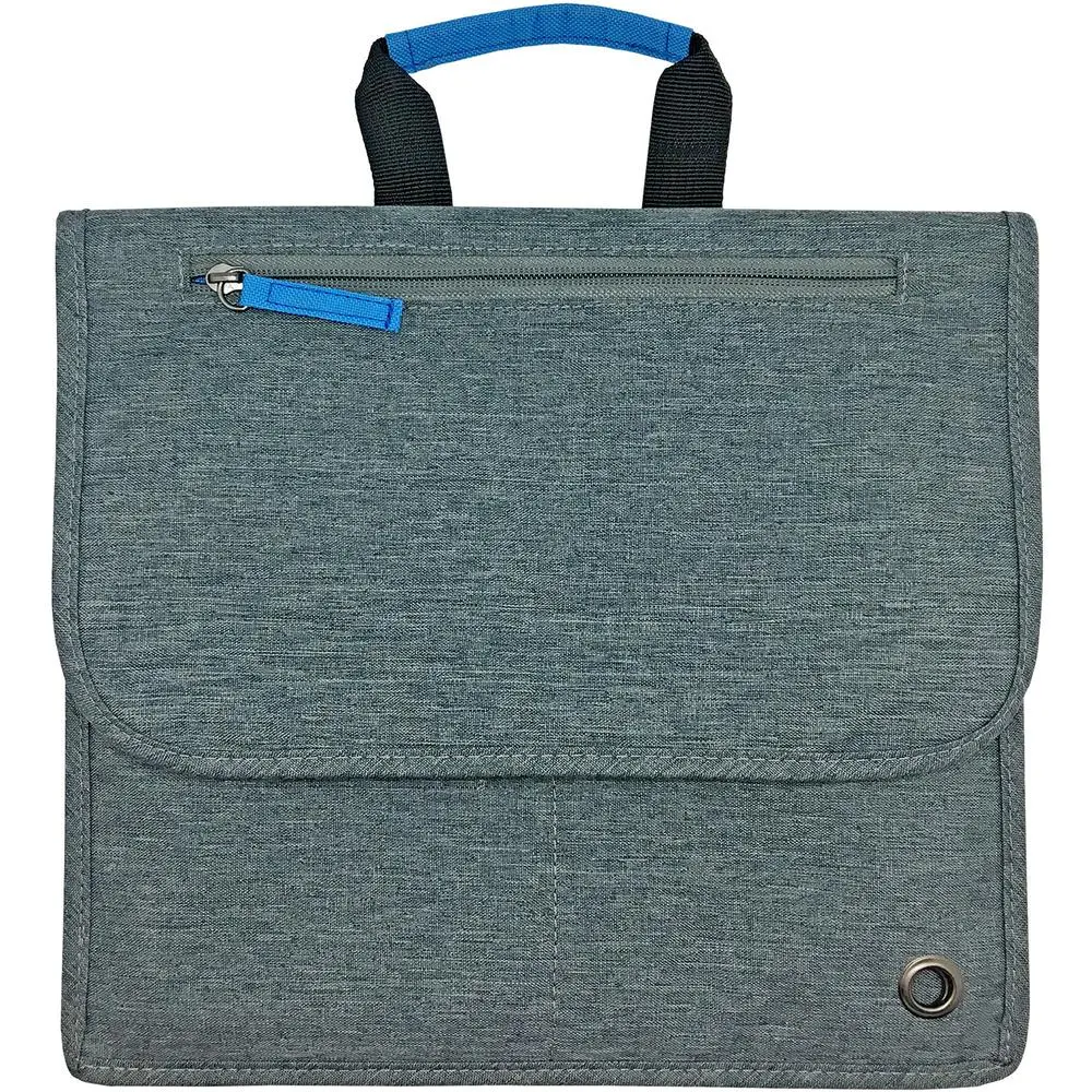 The Commuter Essential is the perfect travel organization bag that allows all of your electronics and essentials to be within easy reach while traveling on airplanes, trains or road trips. It keeps travel essentials easily accessible during flight. Bag includes six inner pockets, one zipper pocket on the front flap, and two loops for cord management and noise-canceling headphone storage. It hangs from any seat back pocket.